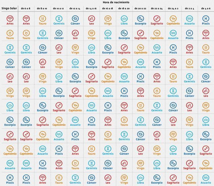 A seguir, use a tabela como guia: localize seu signo do Zodíaco na coluna do signo solar e deslize pela linha até encontrar a faixa horária do seu nascimento. Quando coincidir, este é seu ascendente.