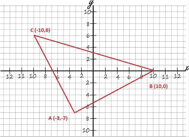 Agora só temos que marcar o pondo médio no eixo das coordenadas. Os valores de x e y são as coordenadas do ponto central do triângulo e no nosso caso são: