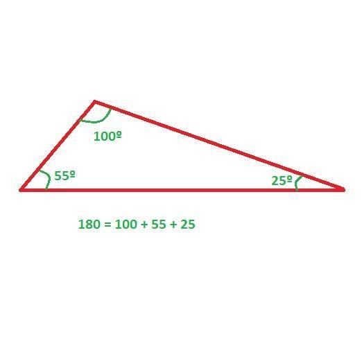 Subtraia o total dos dois ângulos conhecidos a 180 graus, portanto, 180-80 = 100 graus. O resultado de 100º é a medida do terceiro ângulo que era o ângulo desconhecido.