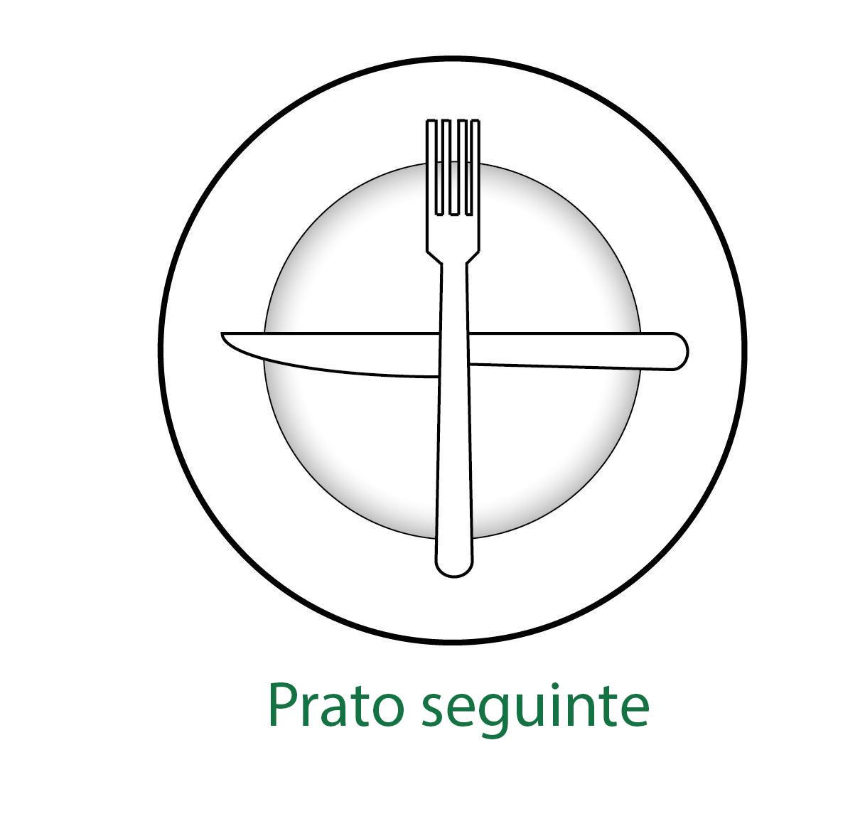 Uma vez que tenhamos terminado um prato e queiramos que nos sirvam o seguinte, será necessário deixar os talheres cruzados sobre o prato. A faca deverá ser colocada de forma transversal sobre o prato, com a serra para baixo, e o garfo perpendicularmente sobre este.