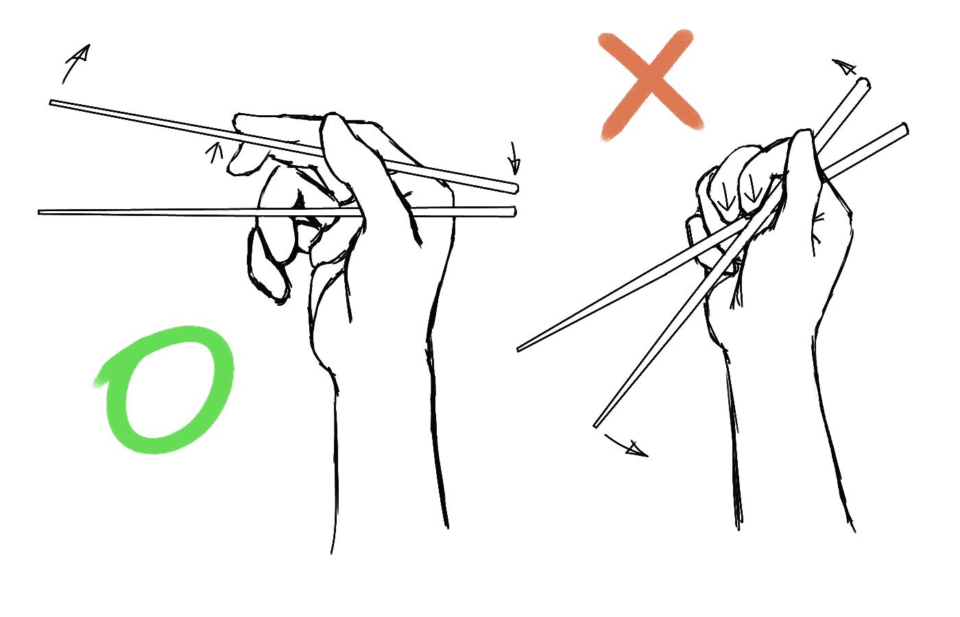 Para saber como comer com hashi, o primeiro passo é compreender a posição dos palitinhos na mão.
