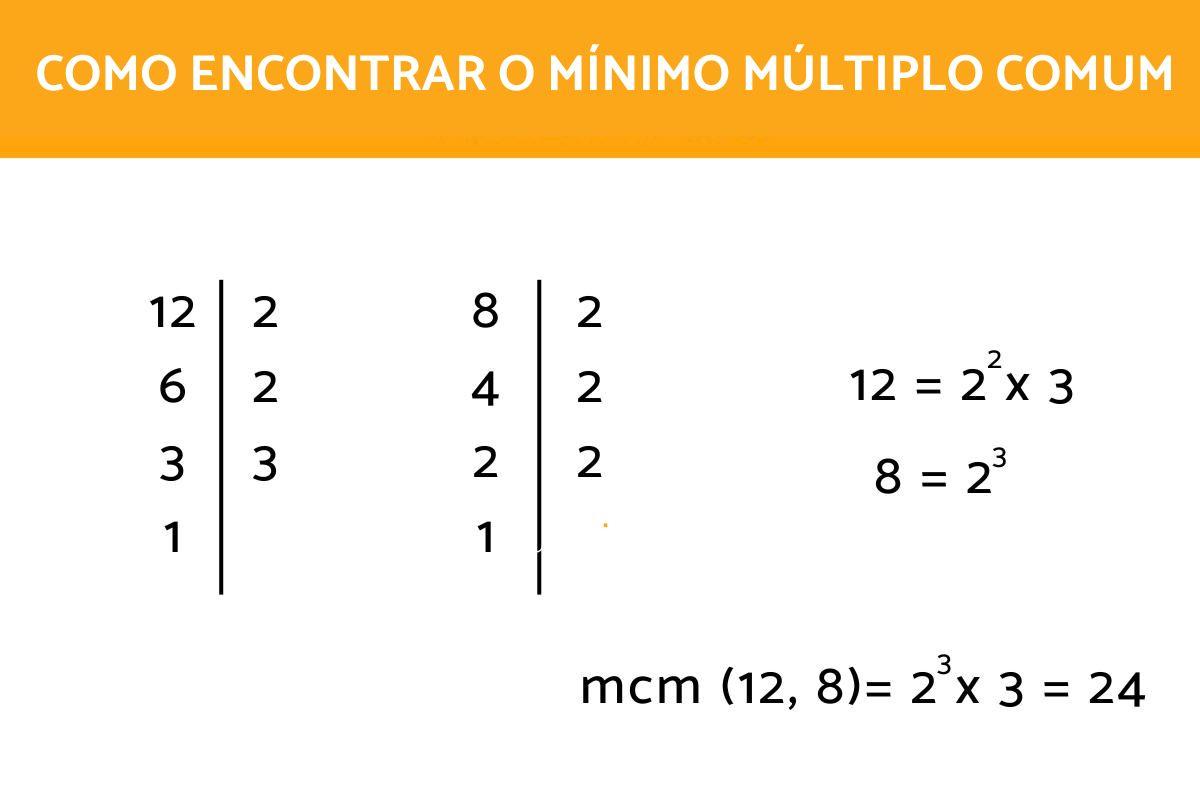 Para que você veja com mais clareza como obter o MMC com este segundo método, no umCOMO te ajudamos mostrando o seguinte exemplo: o cálculo do Mínimo Múltiplo Comum de 12 e 8.