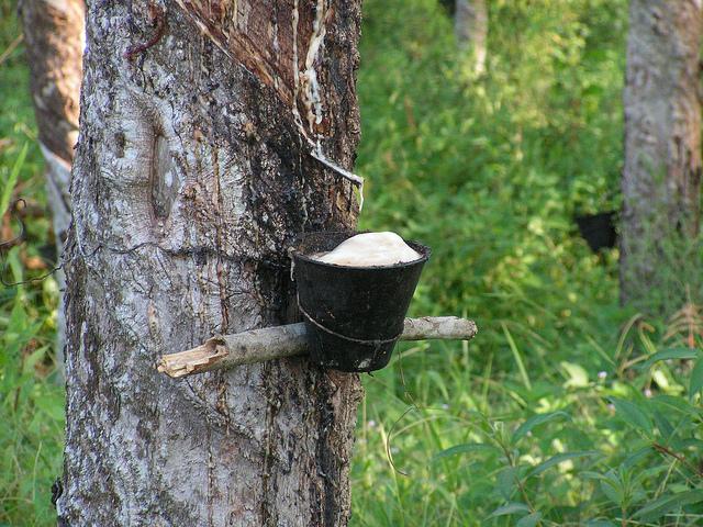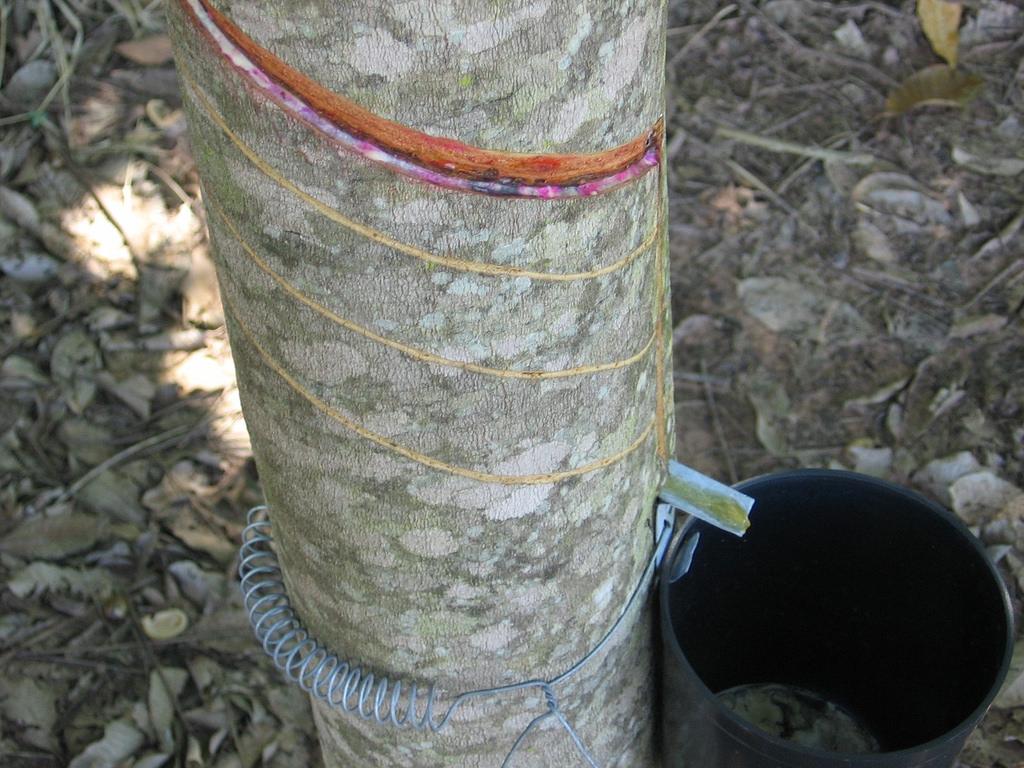 Para obtermos a borracha natural é necessário fazer cortes nos troncos das seringueiras para aumentar o fluxo de seiva e direcioná-lo para as tigelas de recolha do látex. A borracha natural tem assim um aspecto de leite branco, viscoso e grudento. Mas antes de poder ser utilizada tem de passar por um processo chamado vulcanização. Só assim irá adquirir as propriedades mecânicas que conhecemos.