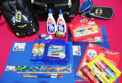 Depois, recorte cada etiqueta e cole onde for necessário, cadernos, canetas, mochila, livros didáticos.