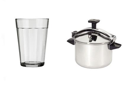 A primeira coisa a fazer é encher com água da torneira uma panela com capacidade para 5 litros. De seguida, deverá colocar um recipiente de vidro na água e certificar-se que ele flutua.