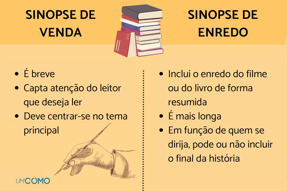 Existem dois tipos de sinopse: a de venda (ou curta) e a de enredo (ou longa).