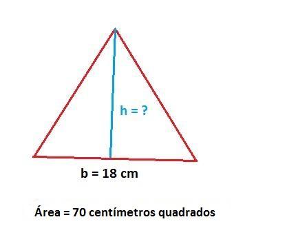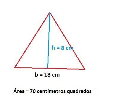 A seguir, escrever a fórmula da área de um triângulo, A = (1/2) · b · h, onde A = área b = base e h = altura.