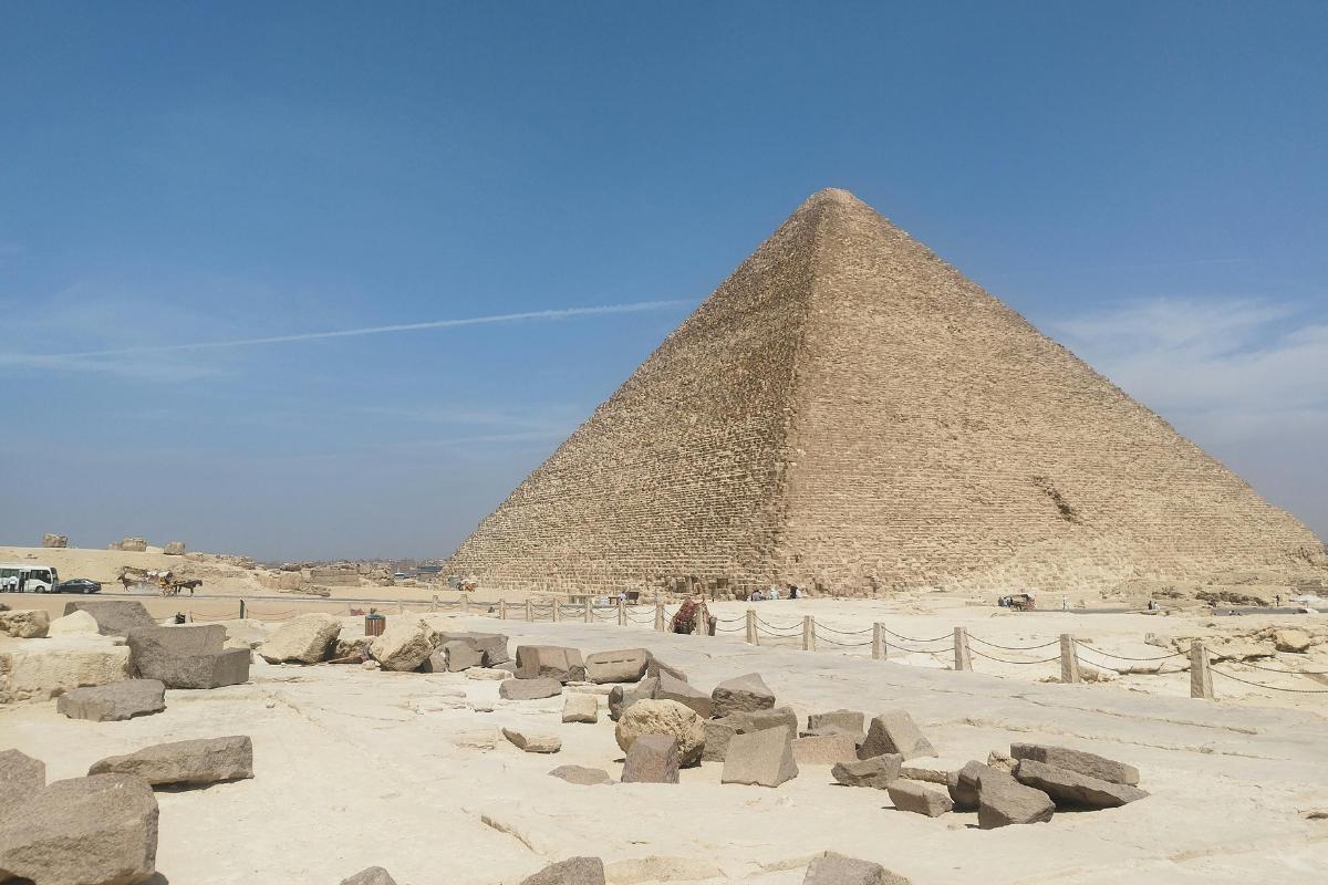 A construção da Grande Pirâmide exigiu mais de 2,3 milhões de blocos de pedra, cada um com um peso médio de 2,5 toneladas. O transporte, corte e colocação destes blocos continua sendo um dos grandes feitos de engenharia do mundo antigo.