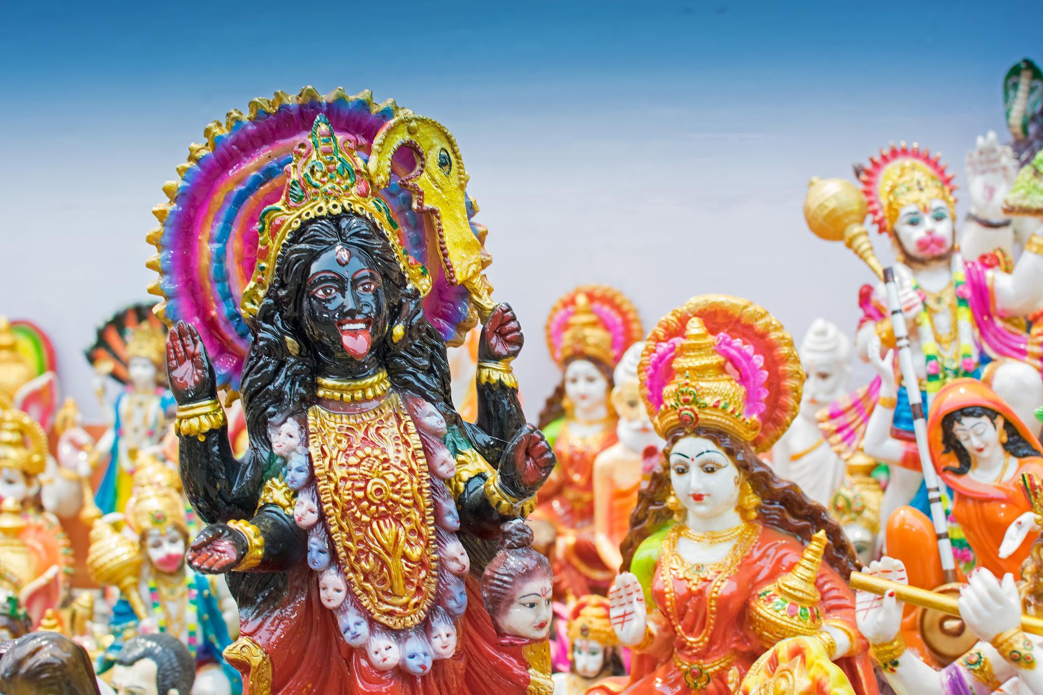 Ela é outra das divindades femininas mais poderosas da religião hindu. Temida e respeitada, ela destrói seus inimigos impiedosamente e isso é mostrado em suas diferentes representações, nas quais ela aparece com uma espada em uma de suas quatro mãos enquanto, em outra, carrega a cabeça decepada e ensanguentada de um de seus inimigos. Além disso, como adorno ele usa um longo colar, também feito com cabeças pequenas. Sua figura é símbolo de força, de poder destruidor contra o mal que cerca o homem e que também se esconde dentro dele.