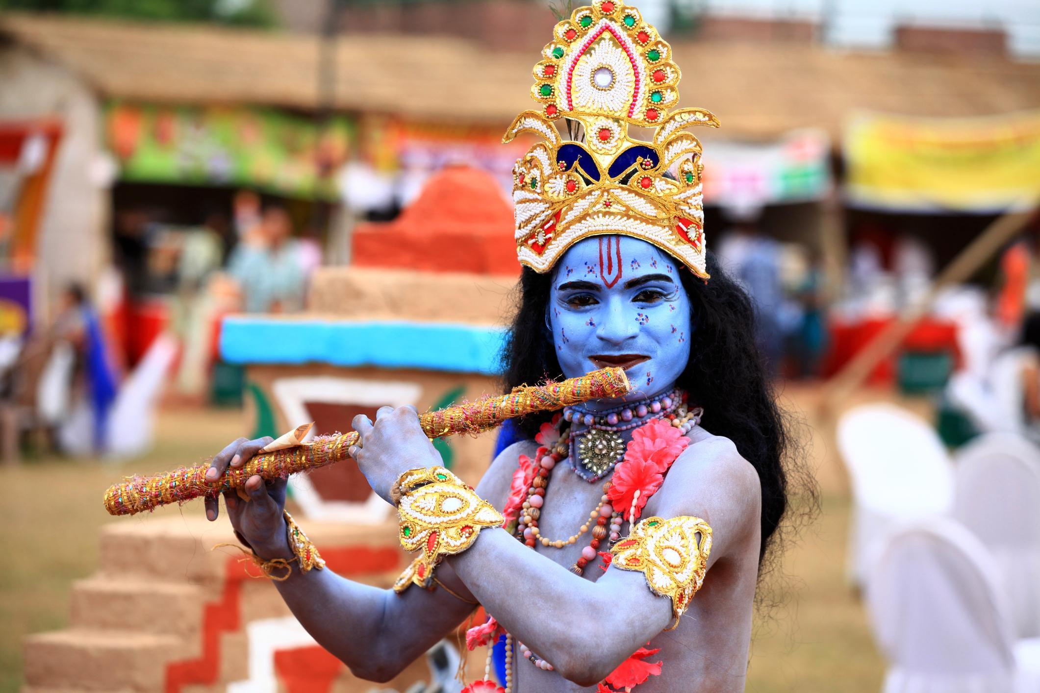 Na religião hindu, ele é chamado de morador dos corações, porque esse deus, por meio de seu amor, tem o poder de acabar com a dor e o mal. Ele é uma das reencarnações de Vishnu, que luta e derrota o pecado, proporcionando alegria e paz. Belo professor e companheiro no caminho da vida, é um deus afável que aparece representado tocando uma espécie de flauta tradicional, razão pela qual é considerado um dos deuses relacionados à arte e principalmente à música.