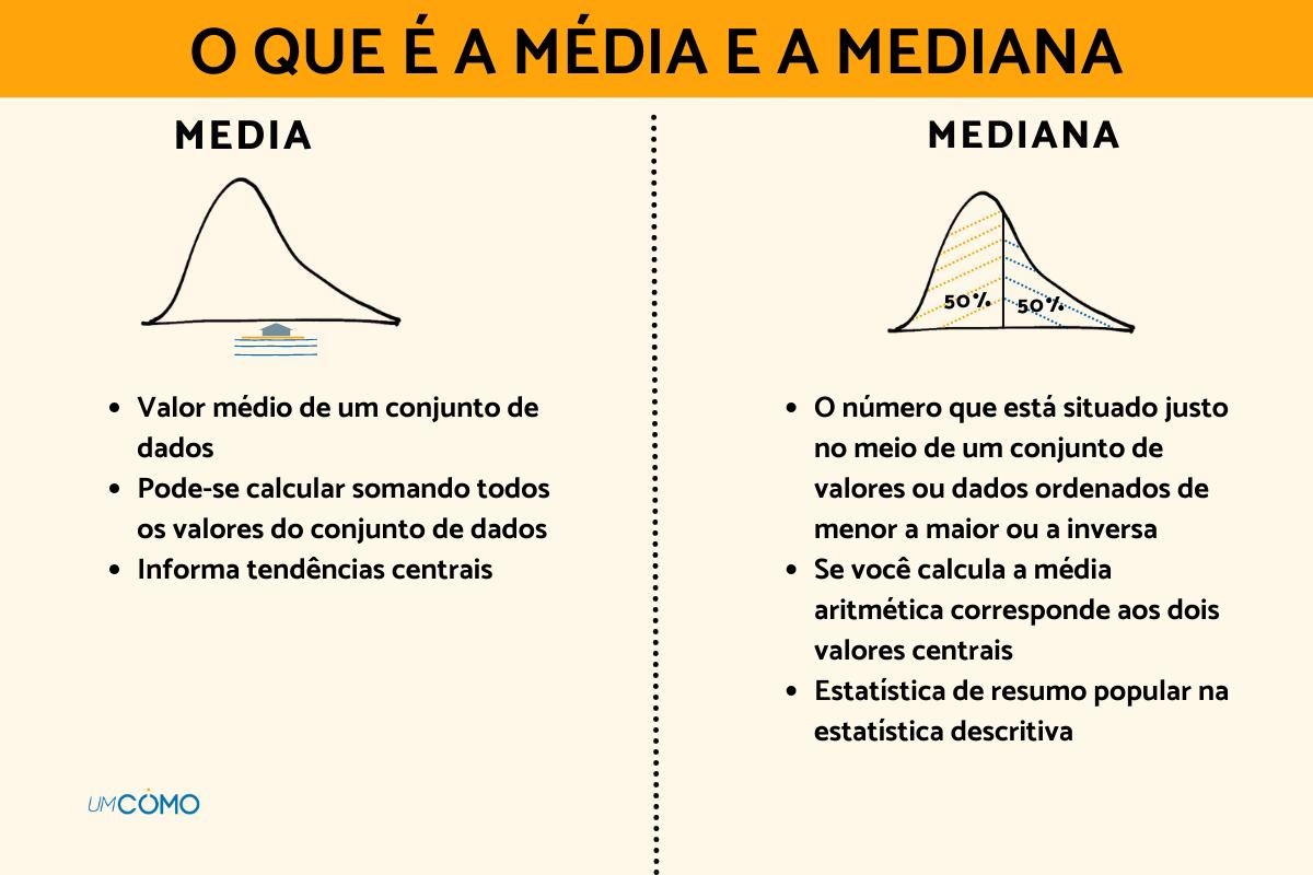 É importante que você entenda a diferença entre média e mediana, tanto na aritmética quanto no ponto de vista da teoria matemática, estatística e de probabilidade. A principal diferença entre os dois termos é que a média é o valor médio correspondente a um conjunto de números, enquanto a mediana se refere ao ponto médio ou ao valor central de um conjunto de números, que são mostrados começando pelo menor valor e terminando para o valor mais alto.