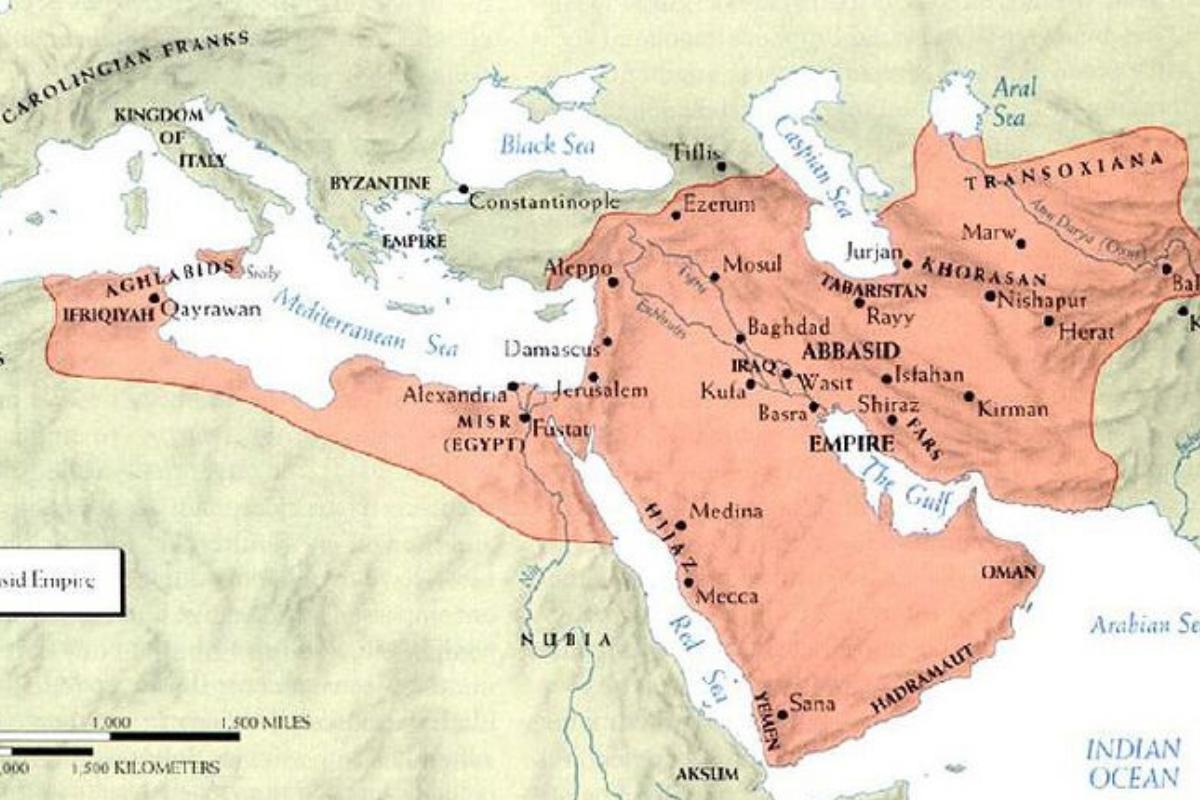 O califado abássida atingiu uma área de 6,9 milhões de quilômetros quadrados. Nos seus domínios incluía a atual Península Arábica, Iraque, Síria, parte da Tunísia, Líbia, Argélia, Turquia e Egito. Al-Mu'tásim foi seu último califa, que os mongóis assassinaram em 1258 na conquista de Bagdá, encerrando o califado.