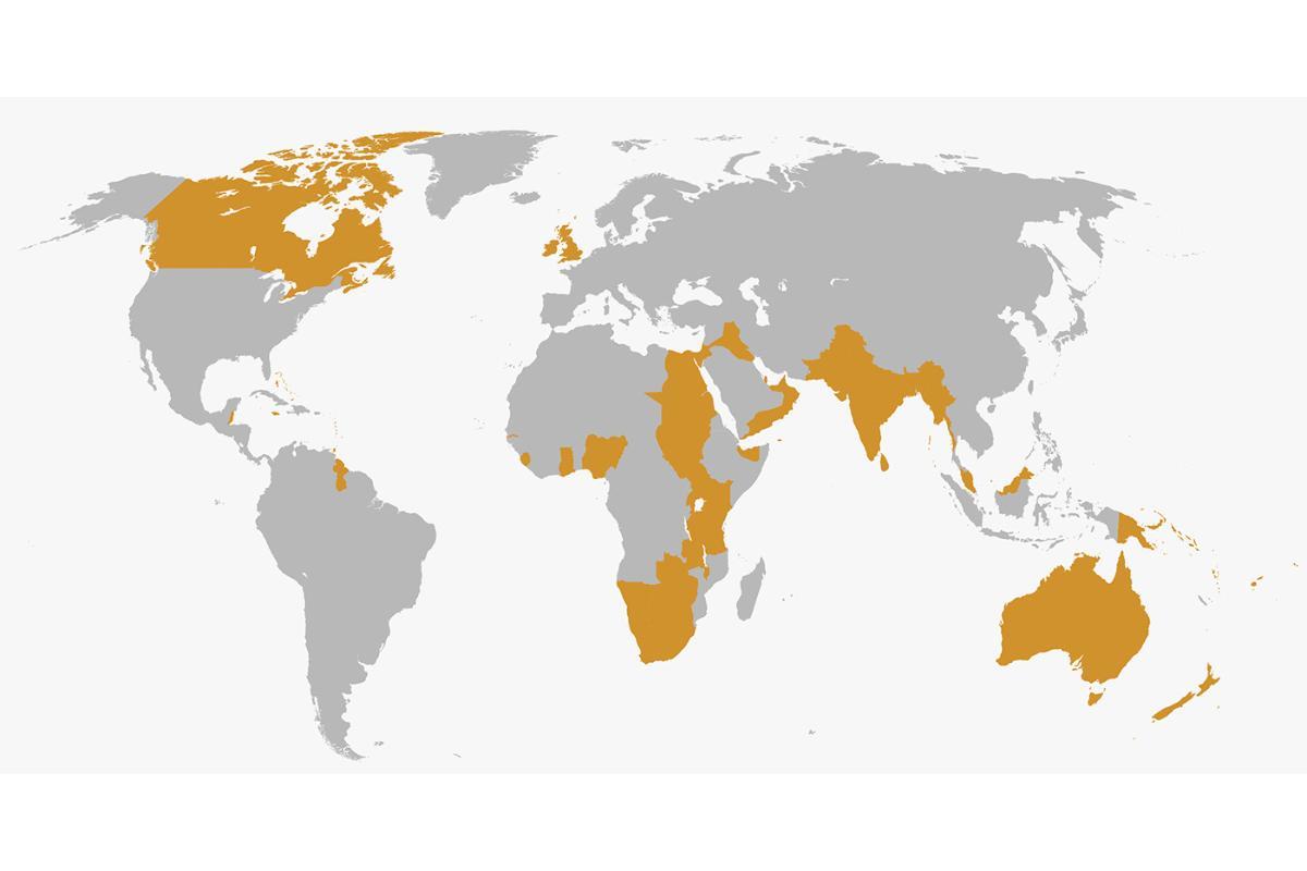 Além do Reino Unido, o Império Britânico incluía a Índia, o Canadá, a Austrália e grande parte da África.