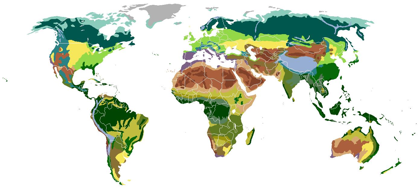 Os biomas terrestres são os biomas da chamada litosfera, a camada que representa a parte sólida do planeta Terra, os outros 30% que não estão ocupados por água. Sob uma perspectiva global, os biomas terrestres mais conhecidos são: