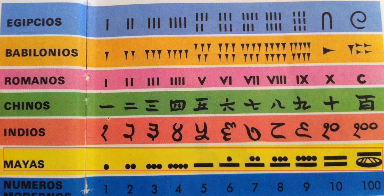Os maias utilizam um sistema de numeração vigesimal (com base de 20) de raiz mista, similar a outras civilizações mesoamericanas. Os maias pré-clássicos desenvolveram independentemente o conceito de zero por volta do ano 36 a.C. Esta é a primeira utilização do zero documentada na América Latina, com algumas peculiaridades que o privam da possibilidade operatória. Inscrições, mostram-os a trabalhar em ocasiões com somas de até centenas de milhões e datas tão grandes que precisavam de várias linhas para as representar.