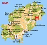 A terceira ilha do arquipélago balear considerando a extensão é a ilha de Ibiza, situada ao sudoeste de Maiorca e ao norte de Formentera, fazendo parte do grupo as Pitiusas. Possuí uma área de 570 km2 e uma população de aproximadamente 134.000 habitantes. Sua capital é Ibiza (Eivissa em catalão), e seu território é dividido em cinco municípios: Ibiza, Santa Eulalia del Río, San José, San Antonio Abad e San Juan Bautista. A ilha de Ibiza é conhecida nacional e internacionalmente como destino turístico, especialmente conhecida por sua animada vida noturna e suas belas praias.