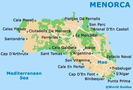 Menorca é a segunda maior ilha do arquipélago balear e seu nome vem precisamente de Minorica, pelo fato de ser menor que Maiorca. Conta com uma área de 702 km2 e uma população de quase 95.000 habitantes. É a ilha mais oriental do arquipélago e foi declarada Reserva ambiental pela UNESCO em 1993. Mahón, a capital, e Ciutadella são os municípios mais importantes da ilha, contando também com municípios regionais como Alaior, Ferreries, Es Castell, Sant Lluis, Es Mercadal e Es Migjorn Grande. Também em Menorca, as línguas oficiais são o catalão e o castelhano.