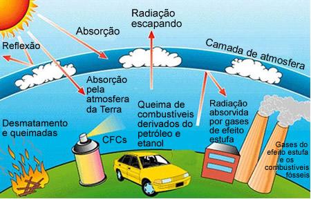 A atmosfera terrestre é altamente transparente à luz solar embora 35% de toda essa luz seja refletida enquanto os outros 65% ficam na terra, essa luz que deveria refletir sobre a terra e então ser direcionada para o espaço acaba tendo o seu calor armazenado na terra pois os gases da atmosfera como o Dióxido de Carbono, Metano, Óxidos de Azoto e Ozônio trabalham como uma estufa e deixam esse calor armazenado em nossa superfície terrestre (esses gases porém, representam cerca de 1% de toda a atmosfera).