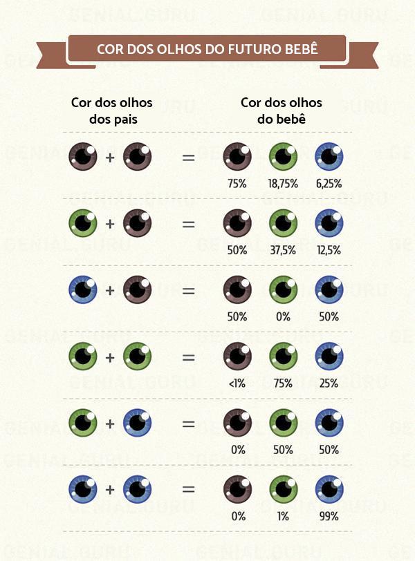 Então, qual será a cor dos olhos do seu filho? Observe a imagem de baixo para descobrir: