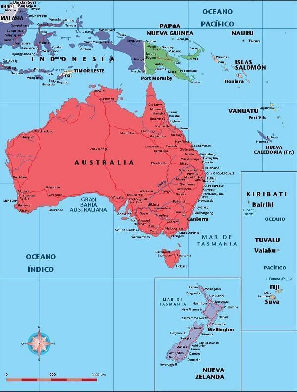 Por último encontra-se a Oceania com 14 países dos 194 do mundo. O maior país deste continente é a Austrália enquanto o de menor extensão é Nauru, que também é considerada a menor ilha do mundo.
